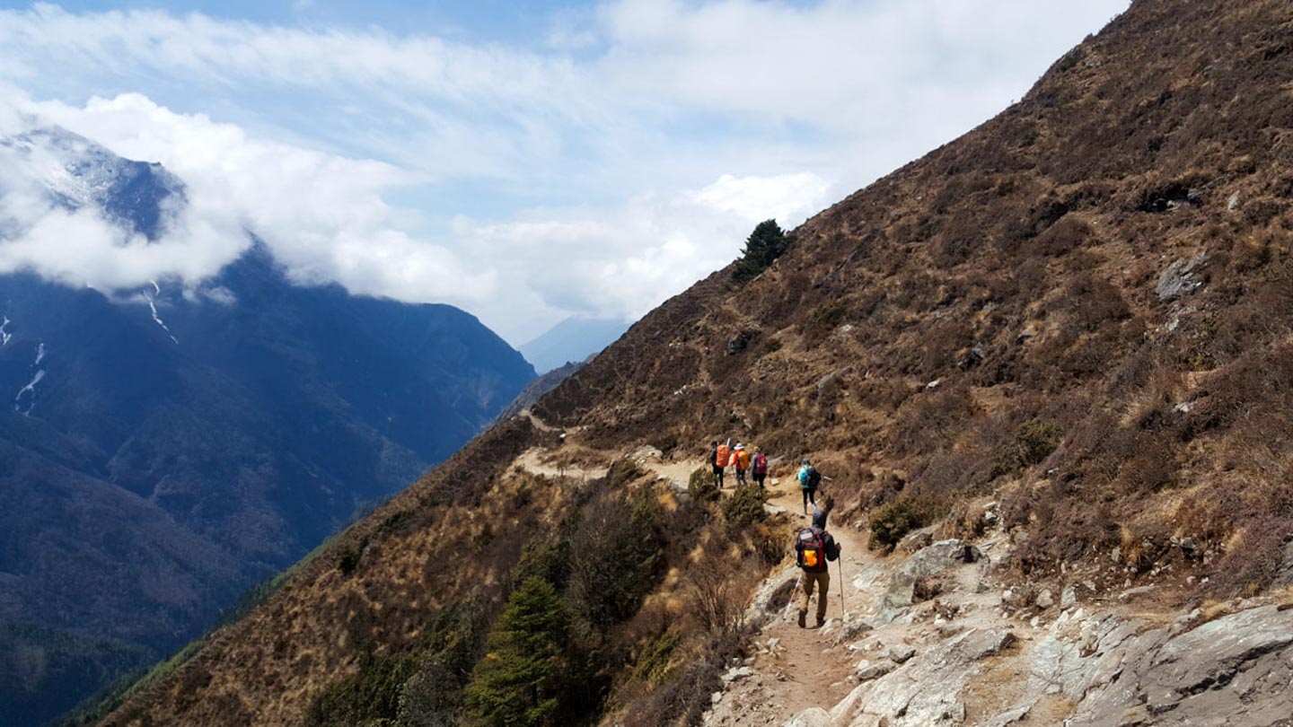 supplies. Our trek starts out with a steady uphill climb and a series of stone